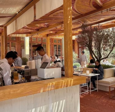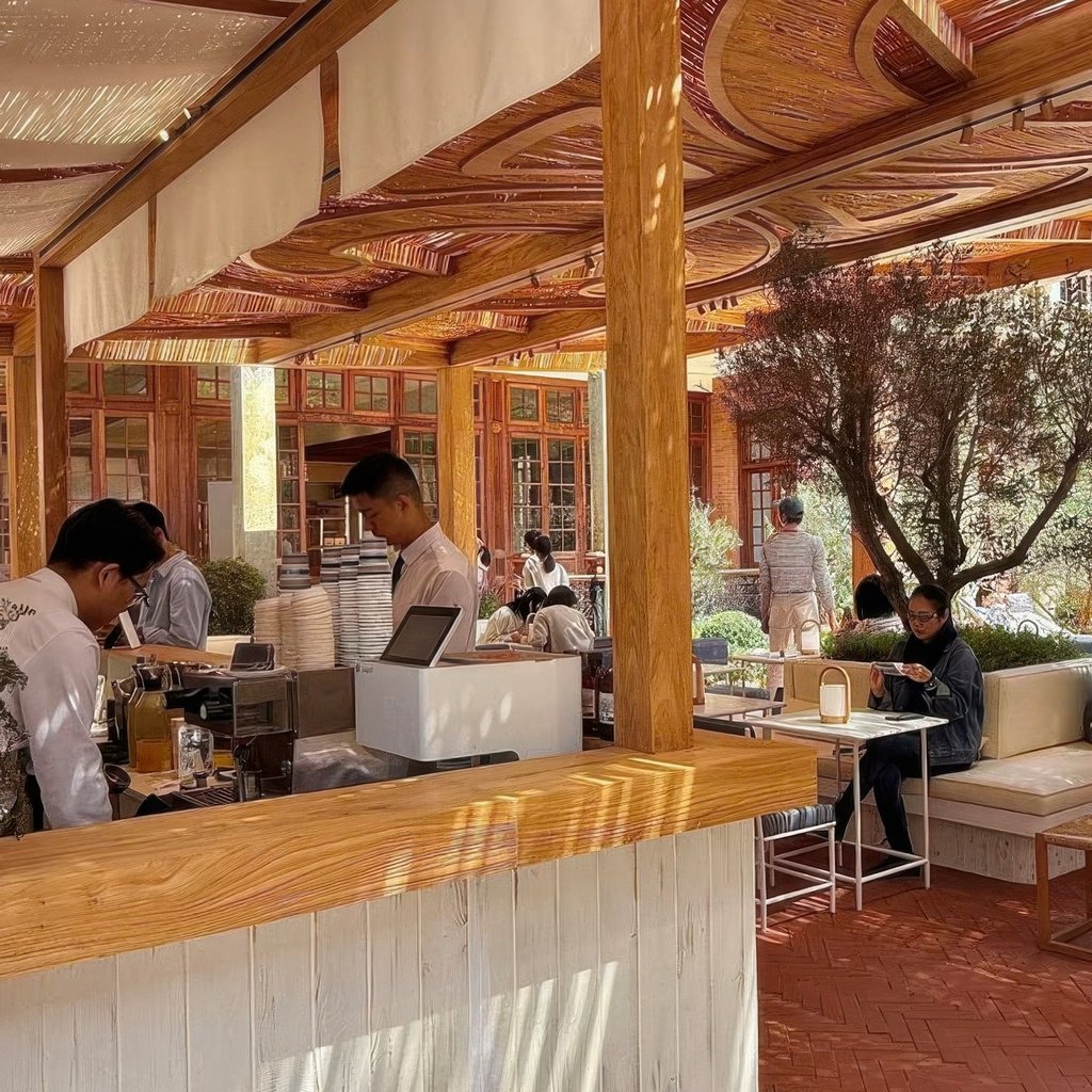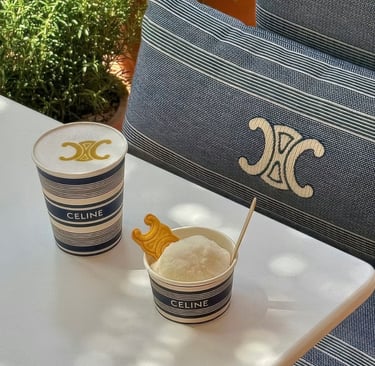 Imagine the scene: A visitor, having wandered through the Mediterranean grove and tried their hand at pétanque, settles into the lounge's wood-paneled shelter. They order an espresso. When it arrives, the foam bears an edible, intricately printed rendering of the Celine Triomphe emblem - or perhaps a delicate palm tree silhouette evoking the French Riviera. For VIP guests, the design might be personalized: a subtle welcome, a reference to a previous purchase, a miniature tribute to their journey through the space.